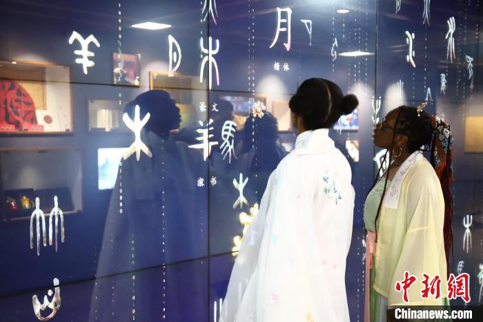 外國留學生通過觸摸電子屏幕體(ti) 驗學習(xi) 漢字文化、了解漢字的演變曆程。 隋翔 攝