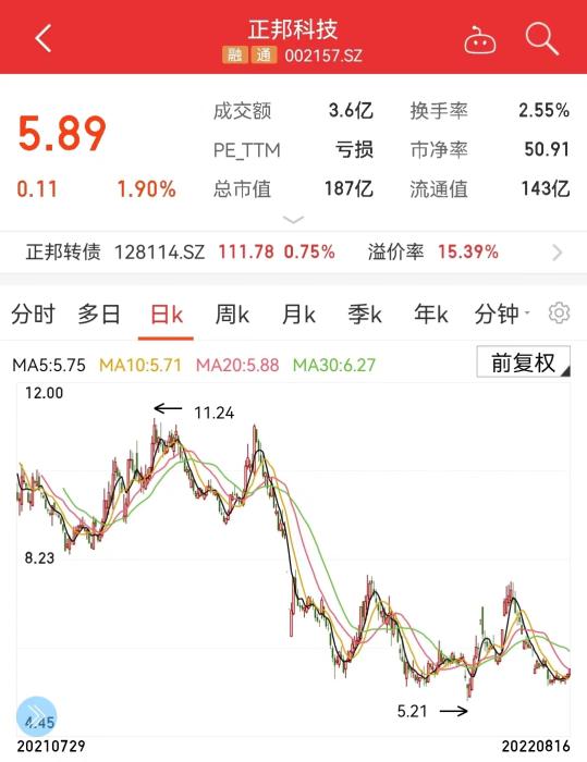 正邦科技股價(jia) 走勢圖。