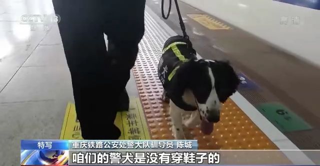 重慶鐵路公安處警犬隊馴導員 陳城:現在地表溫度是非常高的,你看現在都是接近60℃了,咱們(men) 的警犬是沒有穿鞋子的,相當於(yu) 就是(它的)肉墊直接接觸地麵,它是非常痛苦的,所以咱們(men) (正午)基本上不會(hui) 在室外工作了。