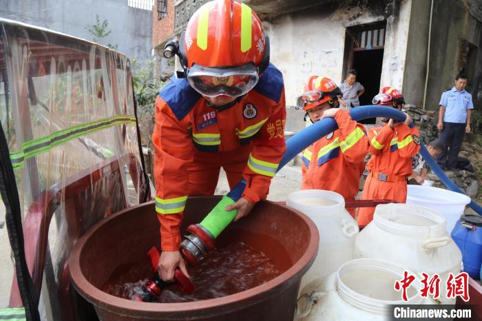 湖北鹹寧消防為(wei) 行動不便的村民送水(資料圖) 湖北鹹寧消防供圖