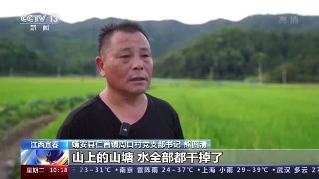 江西靖安縣仁首鎮周口村1500多畝(mu) 農(nong) 田灌溉受近期持續高溫天氣影響。這兩(liang) 天,村黨(dang) 支部書(shu) 記熊四清正忙著帶領村幹部和群眾(zhong) 開展抗旱工作。
