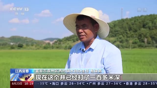 宜春市袁州區西村鎮水利辦主任 易建勇:現在這個(ge) 井已經打了一百多米深,每小時的出水量在10立方米到20立方米之間,可以滿足這300多畝(mu) 田的灌溉。