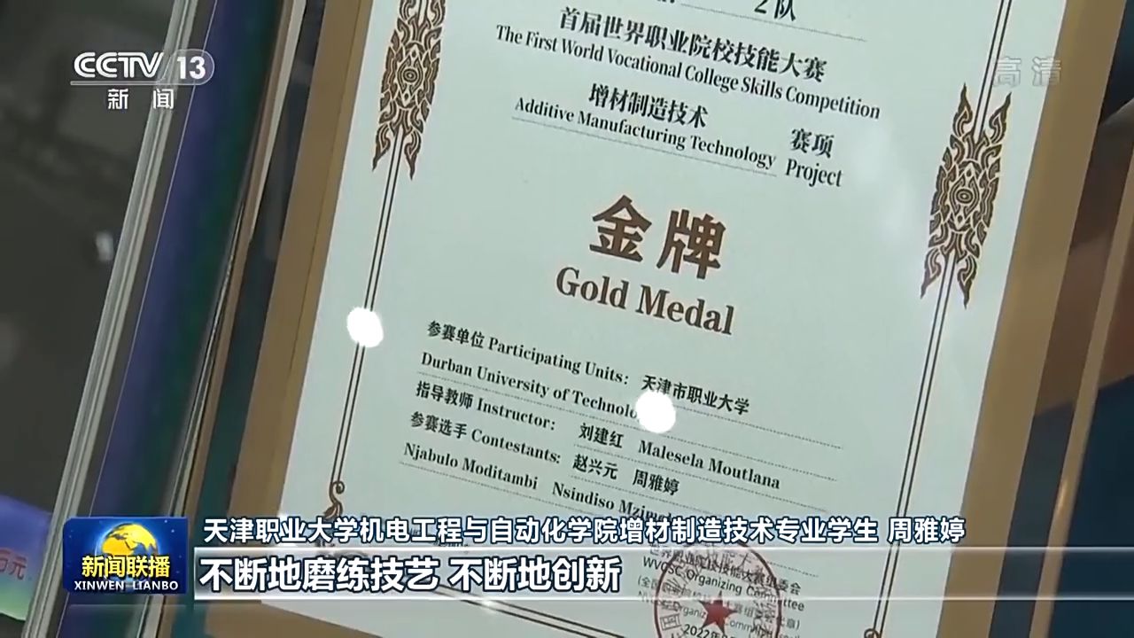 天津職業(ye) 大學機電工程與(yu) 自動化學院增材製造技術專(zhuan) 業(ye) 學生 周雅婷:我覺得我是這個(ge) 時代的幸運兒(er) ,在(學校)實訓基地,其實每天都是實戰,我們(men) 的老師也是技能大師。以前我覺得大國重器是高不可攀的,當我站在世界級的領獎台上,我才發現,將平凡做到極致,不斷地磨煉技藝、不斷地創新,也是在為(wei) 製造大國重器蓄積力量。