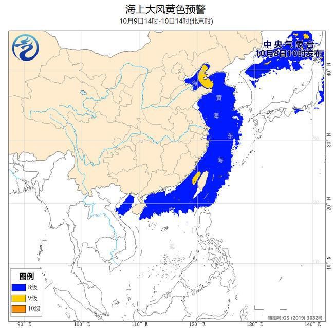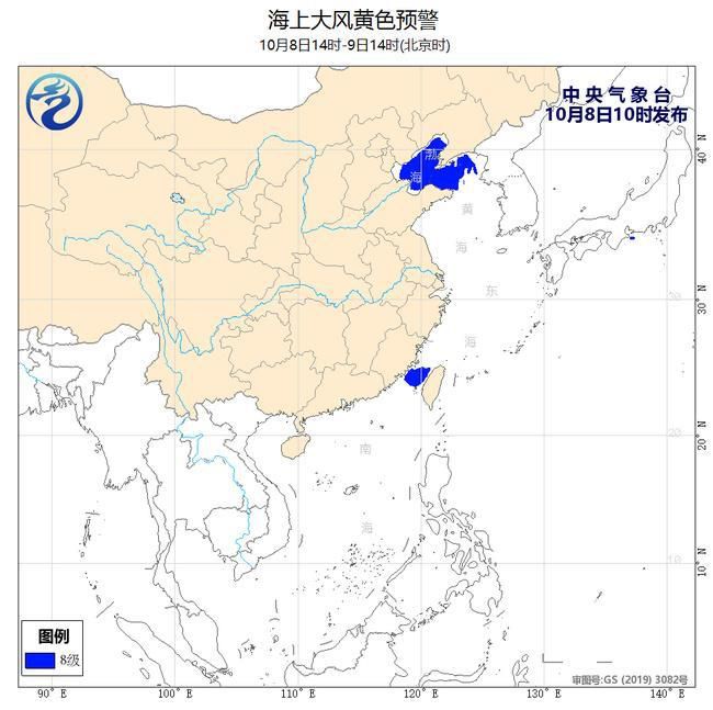 中央氣象台10月8日10時繼續發布海上大風黃色預警: