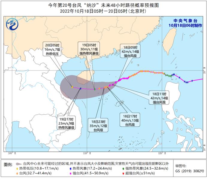 第20號台風“納沙”未來48小時路徑概率預報圖