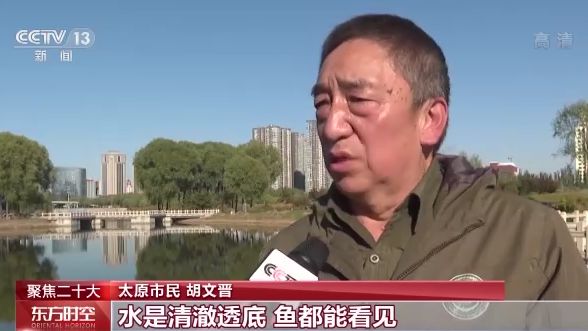 太原市民 胡文晉:水是清澈透底,魚都能看見,綠色比較多了,非常幸福,有獲得感、幸福感。二十大以後,我相信總書(shu) 記會(hui) 帶領我們(men) 過上更加幸福美滿的生活,更加環境優(you) 美。