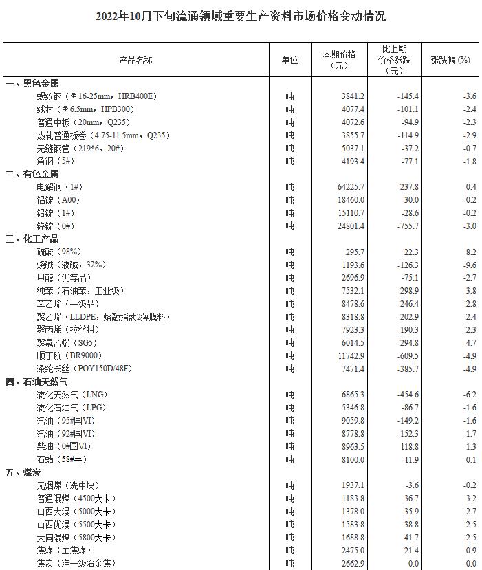 中新網11月4日電 國家統計局網站4日公布2022年10月下旬流通領域重要生產(chan) 資料市場價(jia) 格變動情況。據對全國流通領域9大類50種重要生產(chan) 資料市場價(jia) 格的監測顯示,2022年10月下旬與(yu) 10月中旬相比,15種產(chan) 品價(jia) 格上漲,32種下降,3種持平。其中,生豬(外三元)價(jia) 格環比下跌0.7元,跌幅2.5%。(中新財經)