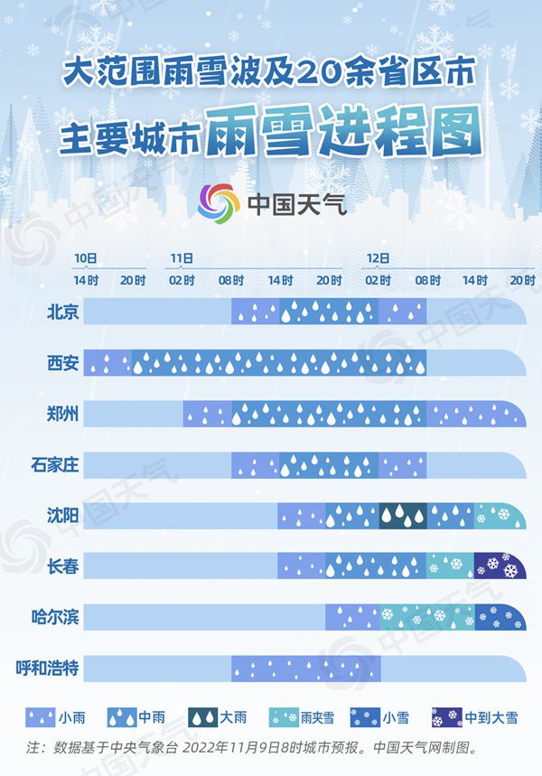 今冬北方首場大範圍雨雪來襲 一圖掌握重點城市雨雪進程