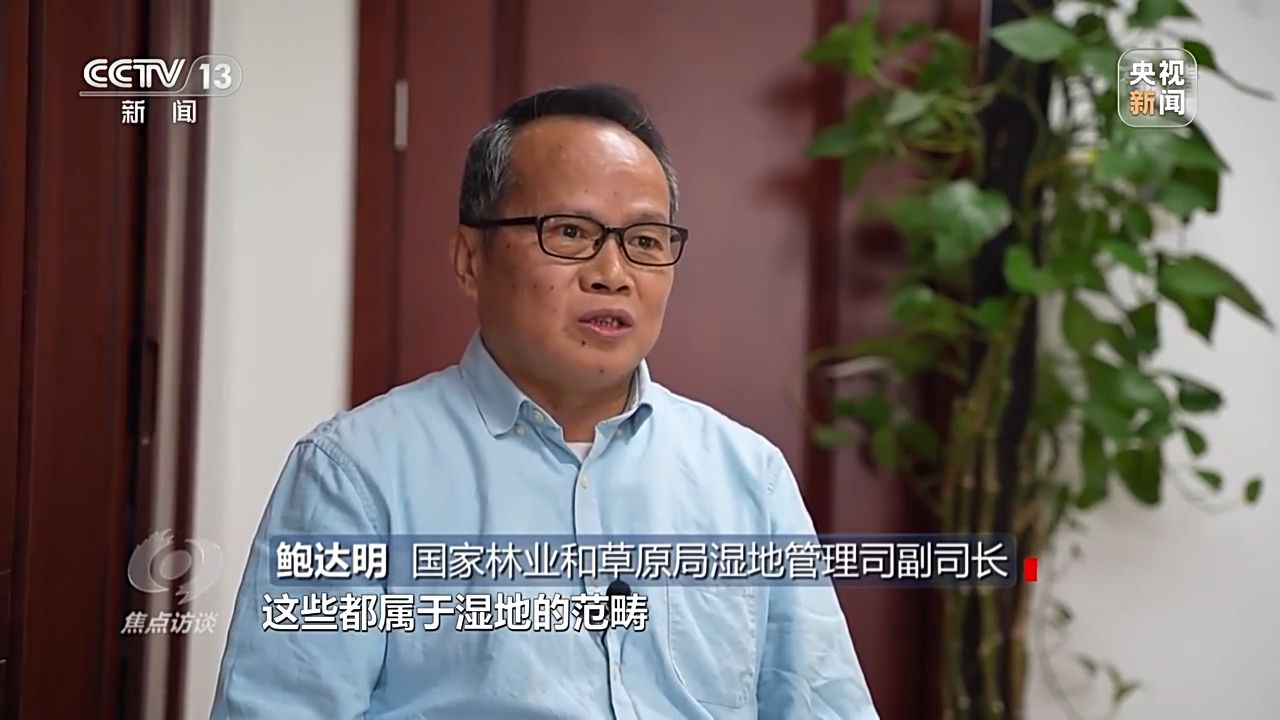 國家林業(ye) 和草原局濕地管理司副司長 鮑達明:像河流、湖泊、沼澤、濱海,也包括人工濕地,這些都屬於(yu) 濕地的範疇。濕地的重要作用,包括調節氣候、維護生物多樣性、蓄洪防旱、儲(chu) 碳固碳等等。