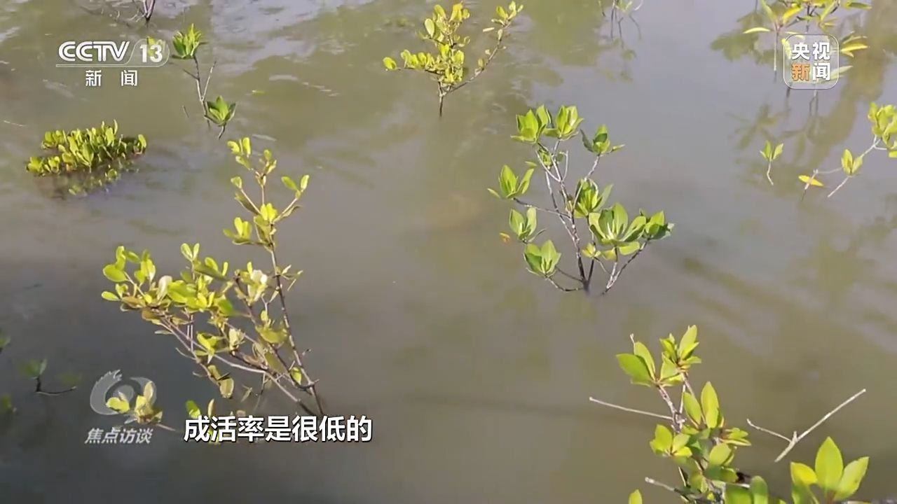 海南東(dong) 寨港國家級自然保護區管理局林業(ye) 工程師 馮(feng) 爾輝:紅樹林胚軸要在母樹上發育成一個(ge) 個(ge) 體(ti) ,然後再掉下來,掉到海水裏麵隨波逐流,成活率是很低的。
