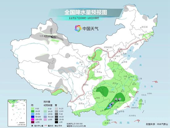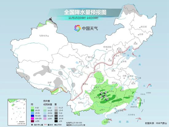 明天將是降雨最強的一天,新疆北部、西藏北部和東(dong) 部、青海南部等地部分地區有小到中雪,其中,新疆北疆北部和伊犁河穀局地有大雪。江淮西部、江南中東(dong) 部和西南部、華南西部等地部分地區有中到大雨,其中,廣西東(dong) 北部等地局地有暴雨。