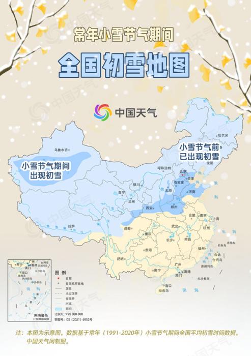 中國天氣網訊 今天(11月22日),我國各地進入小雪節氣,這是冬季的第二個(ge) 節氣,意味著天氣越來越冷、降雪日漸展開。通常此時,冬季版圖從(cong) 黃淮一帶向南繼續擴張,全國平均氣溫也將跌破冰點,北方多地陸續迎來初雪。中國天氣網特別推出小雪期間初雪地圖和大城市“遇雪”概率排行榜,看看哪些城市“冬意”最濃。