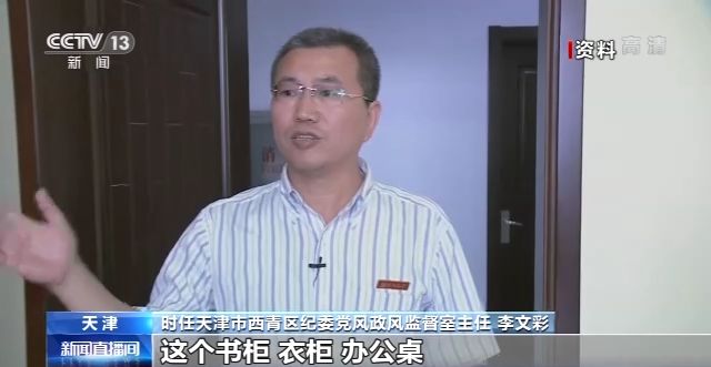 時任天津市西青區紀委黨(dang) 風政風監督室主任 李文彩:進來以後我們(men) 可以看到,書(shu) 櫃、衣櫃、辦公桌跟普通的這個(ge) 辦公用房是一模一樣的。在勘查的過程當中,我們(men) 發現這個(ge) 衣櫃透出一道亮光,我們(men) 覺得挺可疑,打開以後裏麵掛著衣服,這個(ge) 衣櫃沒有了後擋板,直通裏間,儼(yan) 然就是一個(ge) 暗門。這個(ge) 裏間裏邊,床鋪、電視、衣櫃、冰箱、衛生間、洗浴設施一應俱全的。