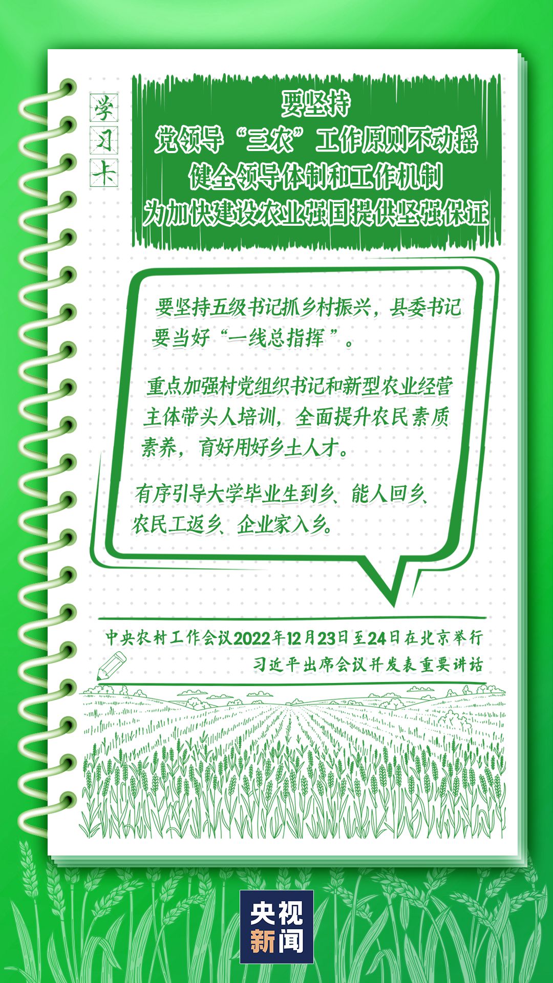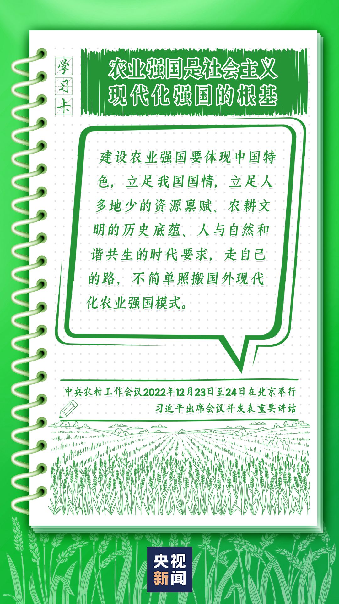 中央農(nong) 村工作會(hui) 議12月23日至24日在北京舉(ju) 行。習(xi) 近平總書(shu) 記出席會(hui) 議並發表重要講話強調,錨定建設農(nong) 業(ye) 強國目標,切實抓好農(nong) 業(ye) 農(nong) 村工作。如何建設農(nong) 業(ye) 強國?總書(shu) 記給出了“路線圖”,一起學習(xi) ↓