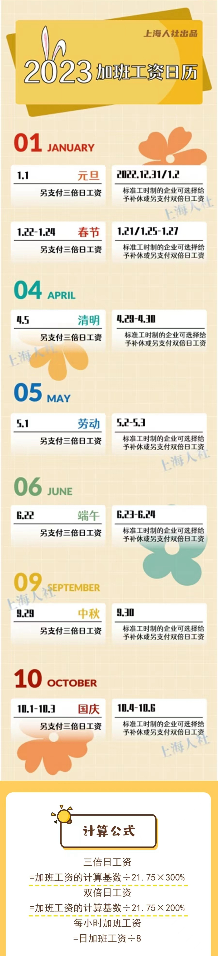 2023年加班工資日曆出爐 春節這3天加班發3倍工資