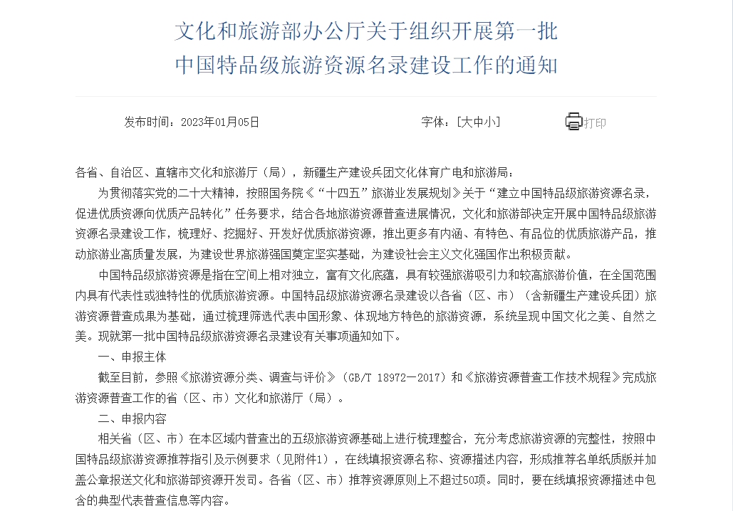 文旅部:開展第一批中國特品級旅遊資源名錄建設工作