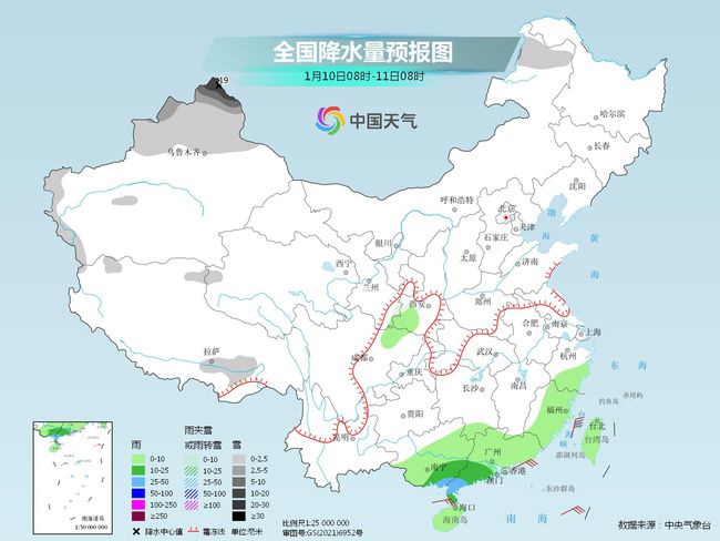 降水方麵,今天,我國降水區域仍集中在一南一北:新疆北部及華南地區,新疆多地有強降雪現身,廣東(dong) 、廣西的部分地區或有大雨。具體(ti) 來看,今天,內(nei) 蒙古東(dong) 北部、新疆北部和西部山區等地部分地區有小到中雪,其中,新疆北疆北部等地部分地區有大到暴雪(10~19毫米)。江南東(dong) 南部、華南大部、台灣島等地部分地區有小到中雨,其中,廣西東(dong) 南部沿海、廣東(dong) 西南部等地部分地區有大雨。