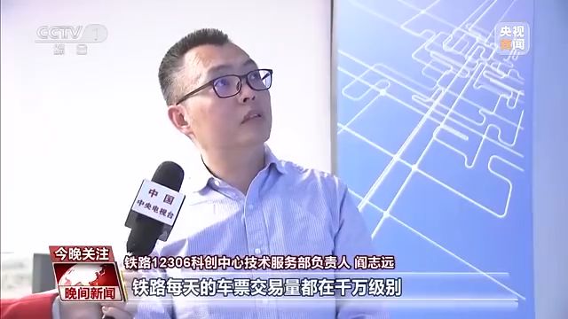 鐵路12306科創中心技術服務部負責人 閻誌遠:鐵路每天的車票交易量基本在千萬(wan) 級別,從(cong) 目前旅客發送統計數據看,出行相對來說比較平穩有序,沒有出現大規模的集中。