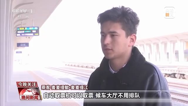 乘客 麥麥提敏 麥麥提江:之前我們(men) 來和田都是開車、坐汽車。時間很長很累,現在火車通了之後,給我們(men) 帶來很多方便,自動取票機可以取票,候車大廳不用排隊。