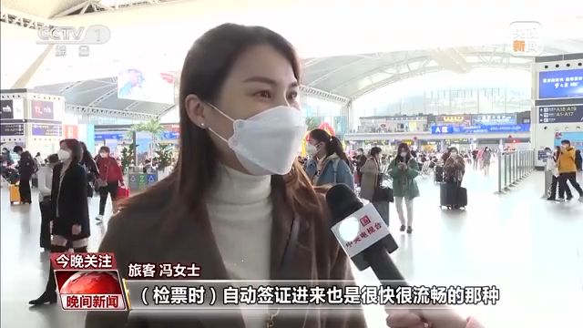 旅客 馮(feng) 女士:現在方便了很多,檢票時自動簽證進來也是很快很流暢的那種,直接拿身份證刷一下就馬上進來了,以前還要排很長的隊現在不用了,很方便。