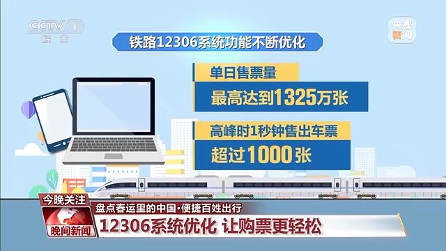 春運出行需求上升,人們(men) 首先想問的,可能就是車票還好買(mai) 嗎?作為(wei) 全球訪問量和交易量最大的在線票務係統,鐵路12306係統功能不斷優(you) 化,單日售票量最高達到1325萬(wan) 張,高峰時1秒鍾售出車票超過1000張。旅客每天可提交發到站相同或同城不同車站的兩(liang) 個(ge) 相鄰日期候補車票,從(cong) 以前的各2張增加到各5張。今年春運期間,候補兌(dui) 現成功率達到75%左右。