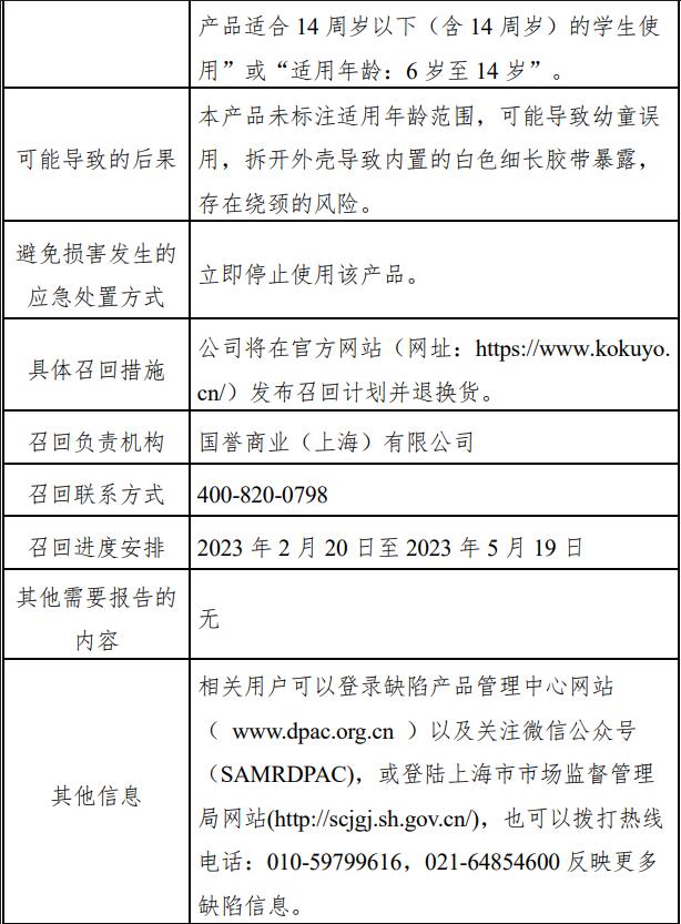 國譽商業(ye) (上海)有限公司將在官方網站(網址:https://www.kokuyo.cn/)發布召回計劃並退換貨。(中新財經)