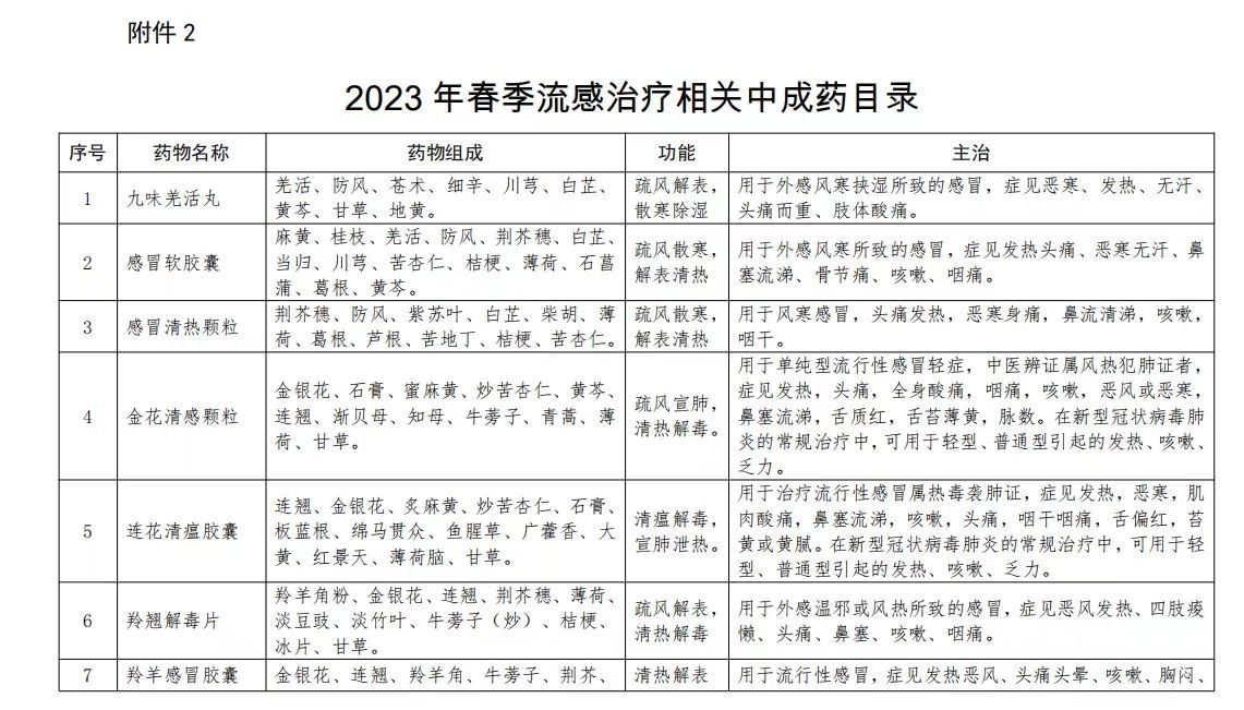 2023年春季流感治療相關(guan) 中成藥目錄
