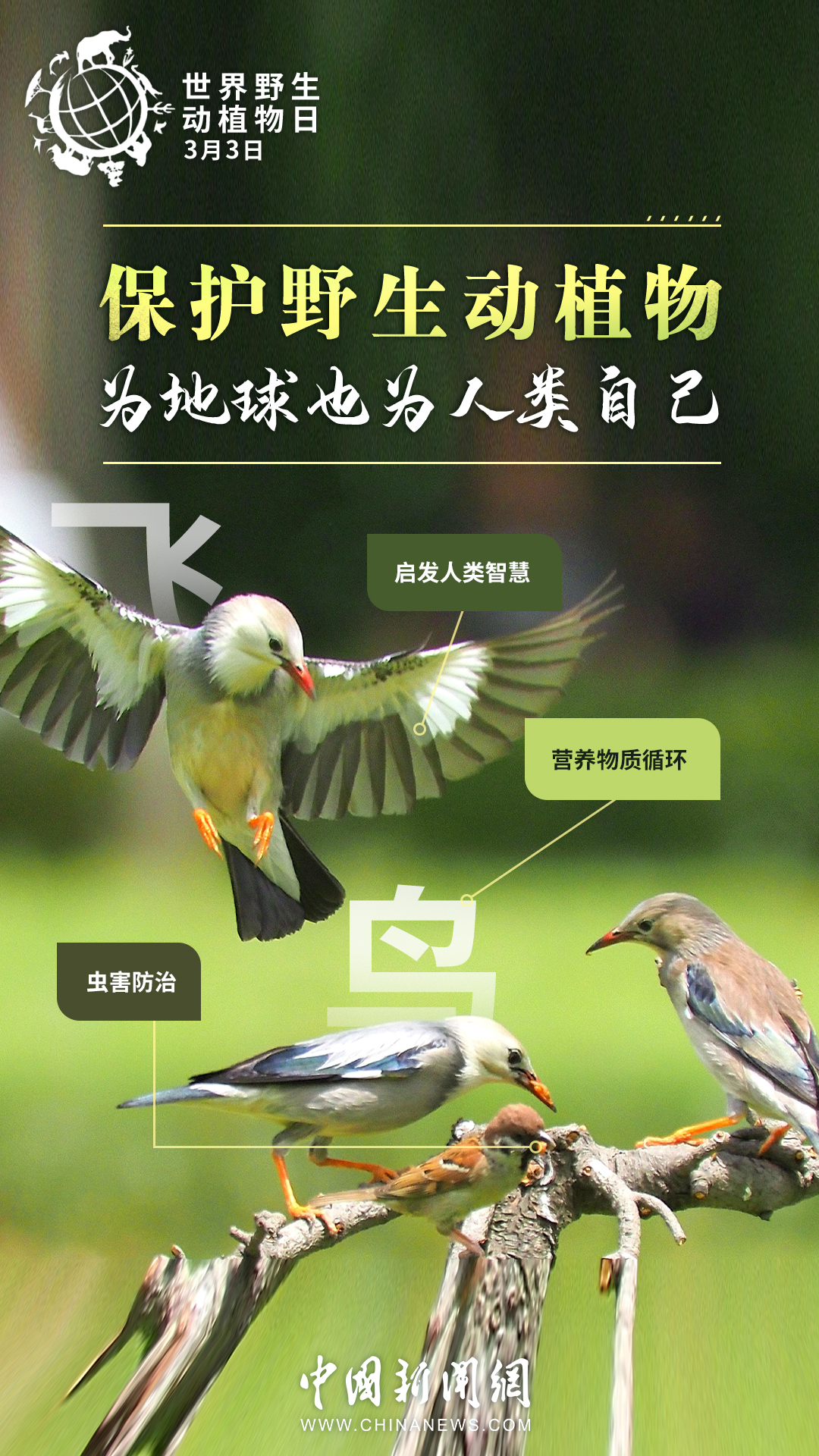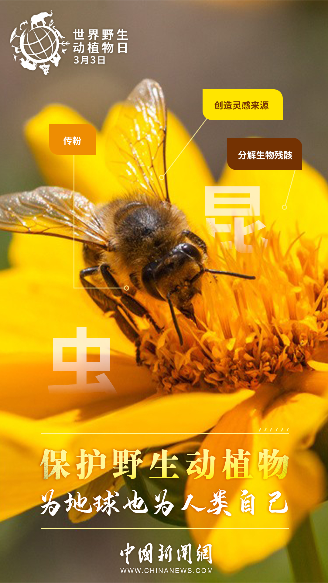 世界約80%的農(nong) 作物都依賴蜜蜂等蟲媒傳(chuan) 粉,一座鯨的屍體(ti) 可以供養(yang) 一套以分解者為(wei) 主的循環係統長達百年……其實,大自然裏的每種生物都有它存在的價(jia) 值。今天是第十個(ge) “世界野生動植物日”,戳圖了解它們(men) 的作用,一起來保護野生動植物。