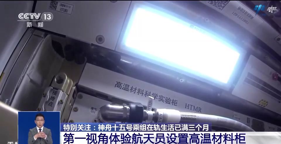 畫麵中是航天員們(men) 正在設置高溫材料科學實驗櫃,這是支持在空間站微重力環境下進行材料製備、加工、原位檢測、實時觀察和診斷於(yu) 一體(ti) 的新型實驗裝置。最高加熱溫度能達到1600℃,溫度的穩定度能達到±0.25℃,這個(ge) 高溫材料科學實驗櫃的工作溫度、穩定度和樣品數量、實時觀察成像技術均處於(yu) 國際領先水平。