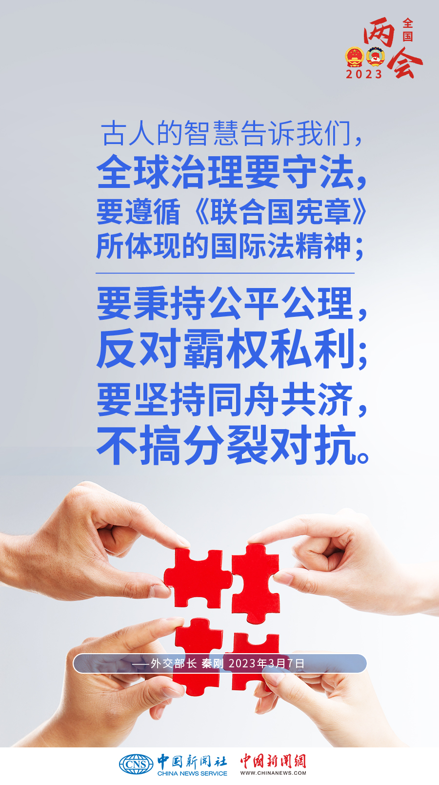 秦剛:古人的智慧告訴我們(men) ,全球治理要守法,要遵循《聯合國憲章》所體(ti) 現的國際法精神;要秉持公平公理,反對霸權私利;要堅持同舟共濟,不搞分裂對抗。
