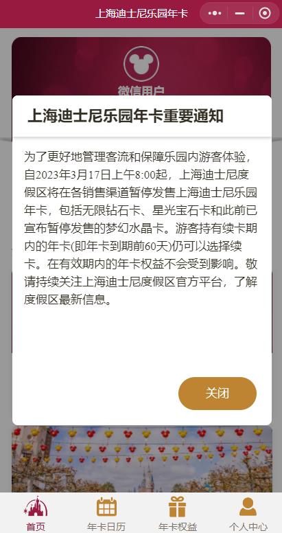 中新網3月17日電 上海迪士尼樂(le) 園年卡小程序通知顯示,自2023年3月17日上午8:00起,上海迪士尼度假區在各銷售渠道暫停發售上海迪士尼樂(le) 園年卡,包括無限鑽石卡、星光寶石卡和此前已宣布暫停發售的夢幻水晶卡。遊客持有續卡期內(nei) 的年卡(即年卡到期前60天)仍可以選擇續卡。在有效期內(nei) 的年卡權益不會(hui) 受到影響。(中新財經)