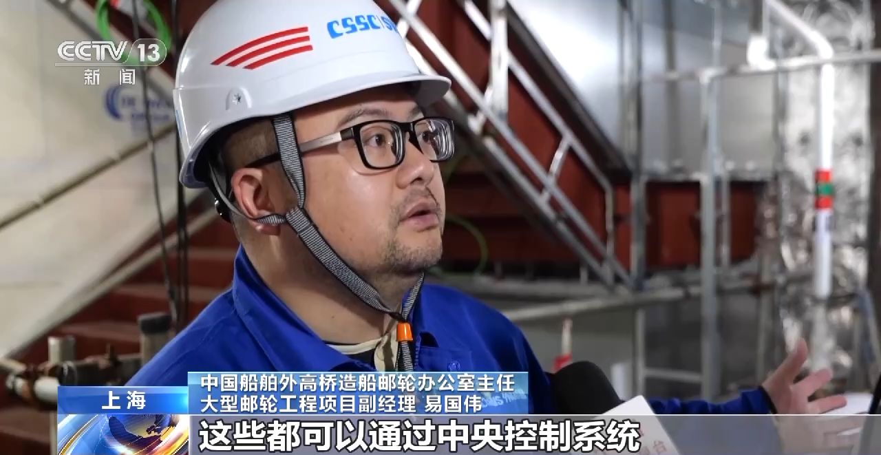 中國船舶外高橋造船郵輪辦公室主任 大型郵輪工程項目副經理 易國偉(wei) :電纜要提供控製信號,這條船它也是智能化的一條船舶,所有上麵用的娛樂(le) 設施、照明設施,都可以通過中央控製係統來控製。