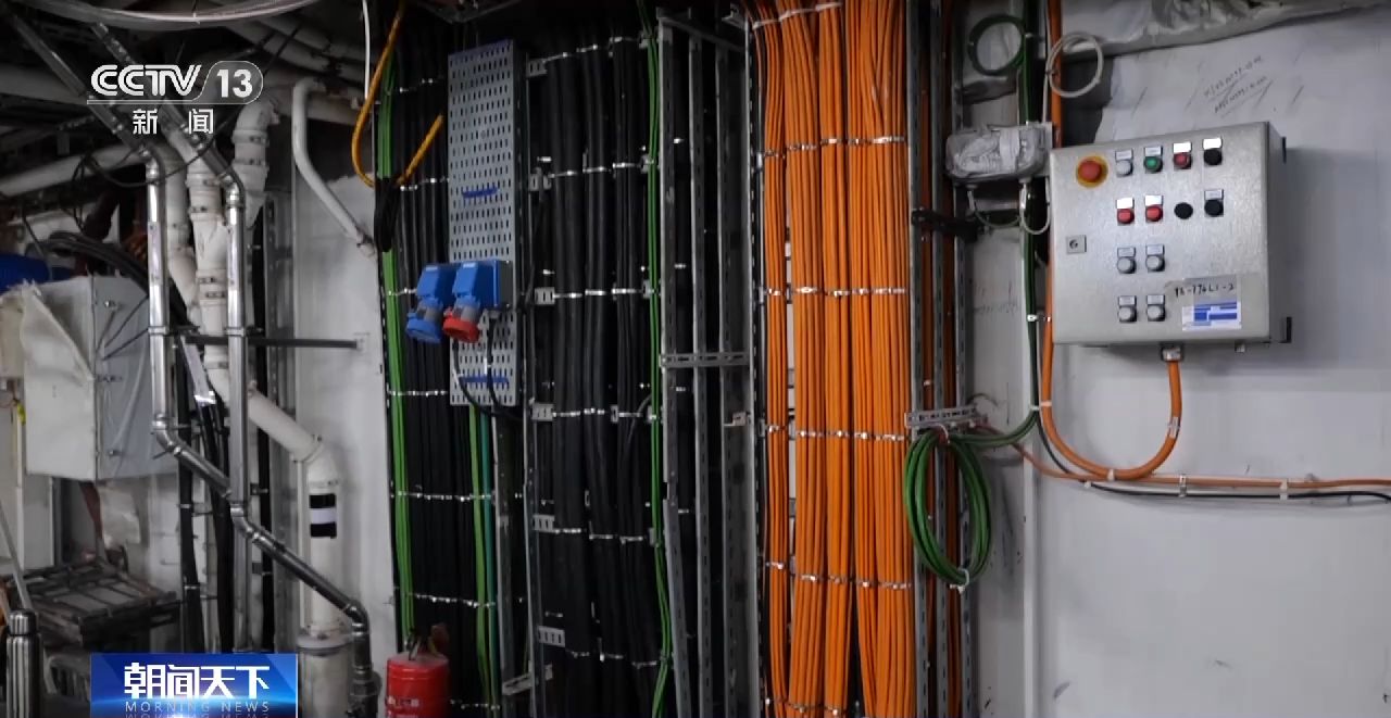 總台央視記者 李寧:如何確保這樣一艘海上巨無霸的正常運行,靠的就是我身後的這些電纜,這些電纜就好比這艘船上的神經和血管,它的總長度超過4300公裏,比哈爾濱到三亞(ya) 的距離還要遠。