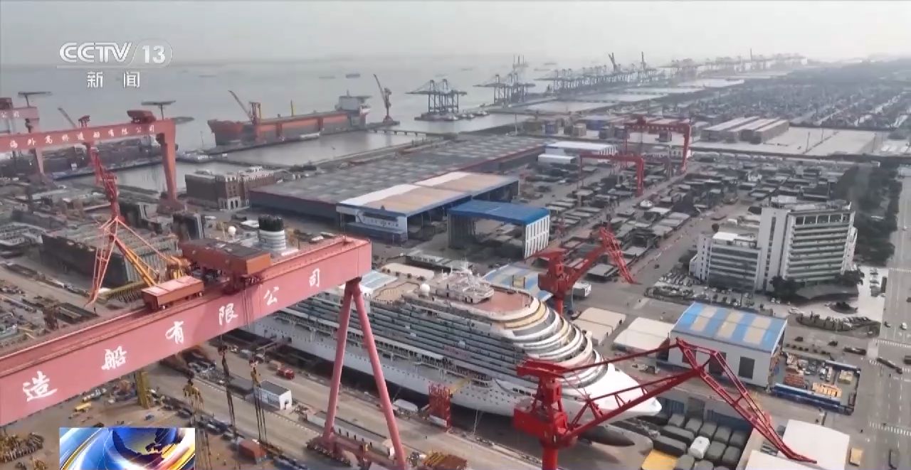 總台央視記者 李寧:為(wei) 了建造這樣一艘海上巨無霸,外高橋船廠對原有的船塢進行了改造,目前的船塢麵積相當於(yu) 7個(ge) 標準足球場,是亞(ya) 洲最大的船塢。第一艘郵輪在完成出塢之後,第二艘郵輪就將同步進場,最終這個(ge) 船塢將實現滾動建造模式。