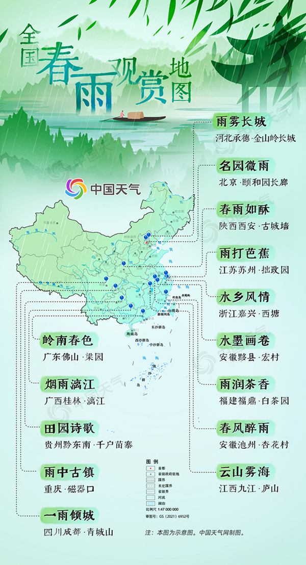 中國天氣網訊 古往今來,春雨對於(yu) 中國人來說,都是一種特別的存在。它不僅(jin) 僅(jin) 是一種自然現象,更是一份期盼、一縷情思、一道風景。又到一年杏花微雨時,中國天氣網特別推出全國春雨觀賞地圖,快來看看哪裏的春雨最讓你心動。