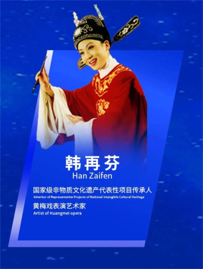韓再芬,中國黃梅戲表演藝術家,國家一級演員,國家級非物質文化遺產(chan) 代表性項目黃梅戲傳(chuan) 承人。第十屆、第十三屆全國人大代表,中國文聯全國委員會(hui) 委員、全國婦聯執委委員、中國戲劇家協會(hui) 副主席、新世紀百千萬(wan) 人才工程國家級人選,全國勞動模範、全國三八紅旗手。