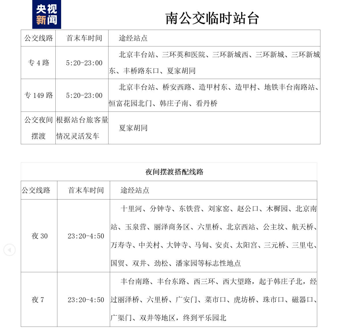0時至5時,北京豐(feng) 台站,在出租車調度站及南廣場臨(lin) 時公交站台區域設有免費擺渡車幫助旅客離站,共計兩(liang) 個(ge) 方向,具體(ti) 如下: