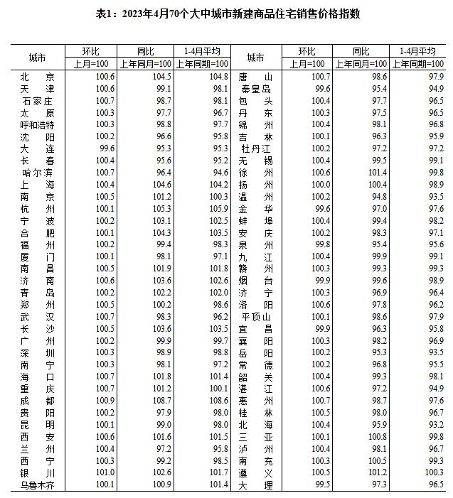 中新網5月17日電 國家統計局網站17日發布2023年4月份70個(ge) 大中城市商品住宅銷售價(jia) 格變動情況,國家統計局城市司首席統計師繩國慶解讀表示,2023年4月份,70個(ge) 大中城市中商品住宅銷售價(jia) 格環比上漲城市個(ge) 數減少,同比上漲城市個(ge) 數增加。70個(ge) 大中城市商品住宅銷售價(jia) 格環比整體(ti) 漲幅回落、二手住宅環比漲幅回落更為(wei) 明顯,各線城市商品住宅銷售價(jia) 格同比上漲或降勢趨緩。