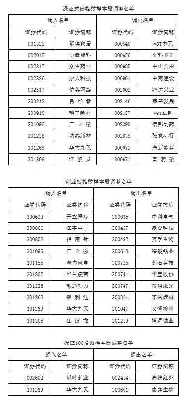 深交所:調整深證成指、創業板指、深證100等指數樣本股