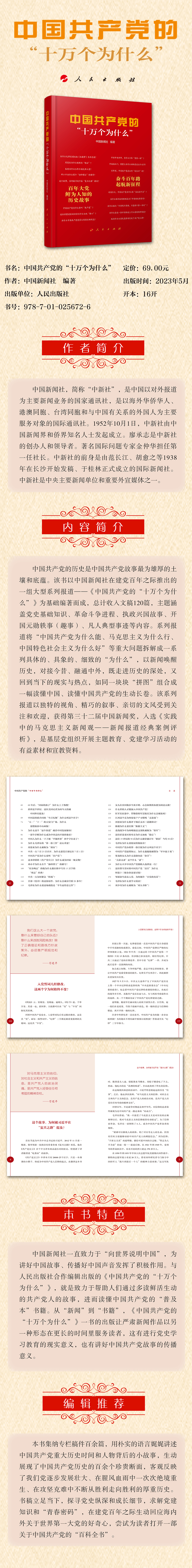 由中國新聞社編著的《中國共產(chan) 黨(dang) 的“十萬(wan) 個(ge) 為(wei) 什麽(me) ”》一書(shu) ,近日由人民出版社出版,在全國發行。