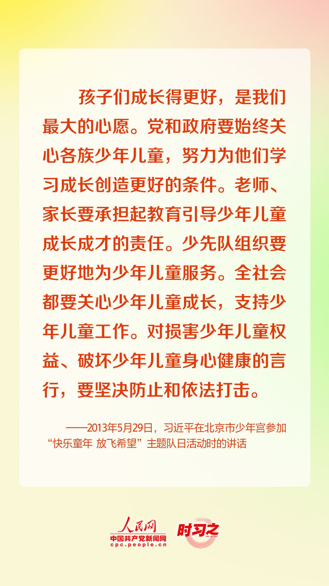 少年兒(er) 童是祖國的未來,是中華民族的希望。一直以來,習(xi) 近平總書(shu) 記十分關(guan) 心廣大少年兒(er) 童的健康成長,多次在不同場合表達對少年兒(er) 童的殷切期望與(yu) 濃濃關(guan) 愛。在“六一”國際兒(er) 童節來臨(lin) 之際,讓我們(men) 共同回顧總書(shu) 記對少年兒(er) 童的殷切寄語。
