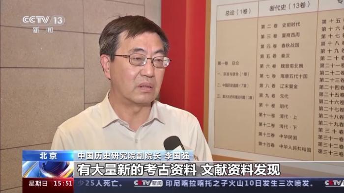中國曆史研究院副院長 李國強:那麽(me) 距離今天我們(men) 前一部通史已經過去20多年,在20多年的時間裏邊,有大量新的考古資料、文獻資料發現,那麽(me) 需要以新的史料、新的理論、新的方法來觀察中國曆史。《(新編)中國通史》跨時代跨度非常長,一直從(cong) 史前時期,寫(xie) 到黨(dang) 的二十大,這樣一個(ge) 時間跨度,在過去的通史編纂當中是前所未有的。同時我們(men) 《(新編)中國通史》也采取了斷代史與(yu) 專(zhuan) 門史相結合的這樣一個(ge) 全新體(ti) 例,這在以往也是前所未有的。