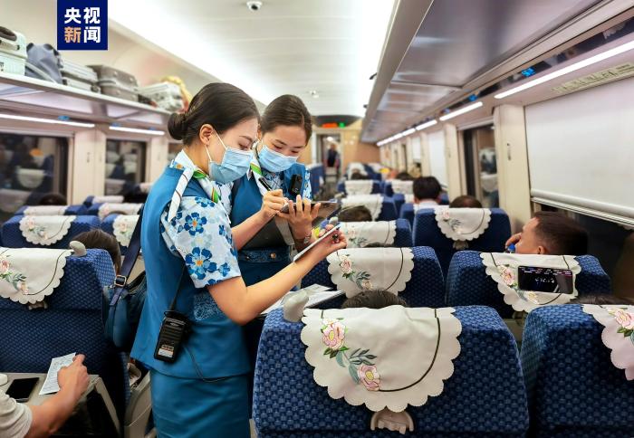 “列車上備有足夠的出入境卡,便於(yu) 旅客在填錯時能夠及時更換,乘務人員也會(hui) 指導填寫(xie) ,對於(yu) 老年旅客或者使用手機不太順暢的旅客,我們(men) 會(hui) 幫著完成出入境申報,讓他們(men) 的出行體(ti) 驗更加便捷、溫馨。”中老鐵路國際旅客列車乘務指導兼列車長代蕊說。