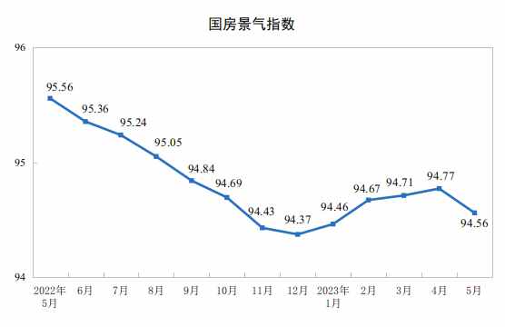 5月份,房地產(chan) 開發景氣指數(簡稱“國房景氣指數”)為(wei) 94.56。