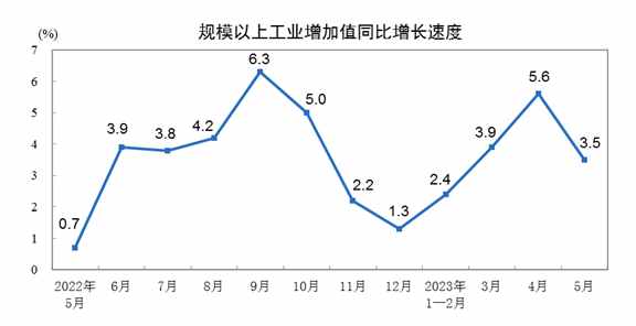國家統計局:2023年5月份規模以上工業增加值增長3.5%