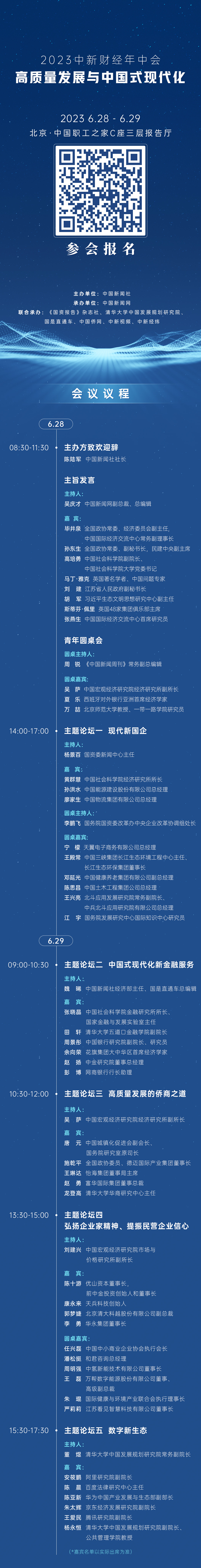 為(wei) 宣傳(chuan) 貫徹落實黨(dang) 的二十大精神和部署,以高質量發展紮實推進中國式現代化建設,推動全麵建設社會(hui) 主義(yi) 現代化國家開好局起好步,中國新聞社擬於(yu) 2023年6月28至29日在北京舉(ju) 辦“2023中新財經年中會(hui) ”,主題為(wei) “高質量發展與(yu) 中國式現代化”。
