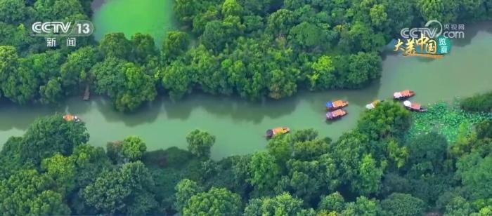 這裏是杭州西溪國家濕地公園。盛夏時節,杭州西溪濕地草木蔥蘢、綠樹成蔭,鷺舞燕翔、荷香魚躍,星羅棋布的魚塘呈現出“萬(wan) 塘攬勝”的美景。這裏生態資源豐(feng) 富,有維管束植物739種、鳥類203種、昆蟲911種、魚類56種。二十年來,杭州西溪濕地以保護原生態為(wei) 目標,統籌生產(chan) 、生活、生態三大空間布局,探索了一條濕地保護與(yu) 利用雙贏的道路。