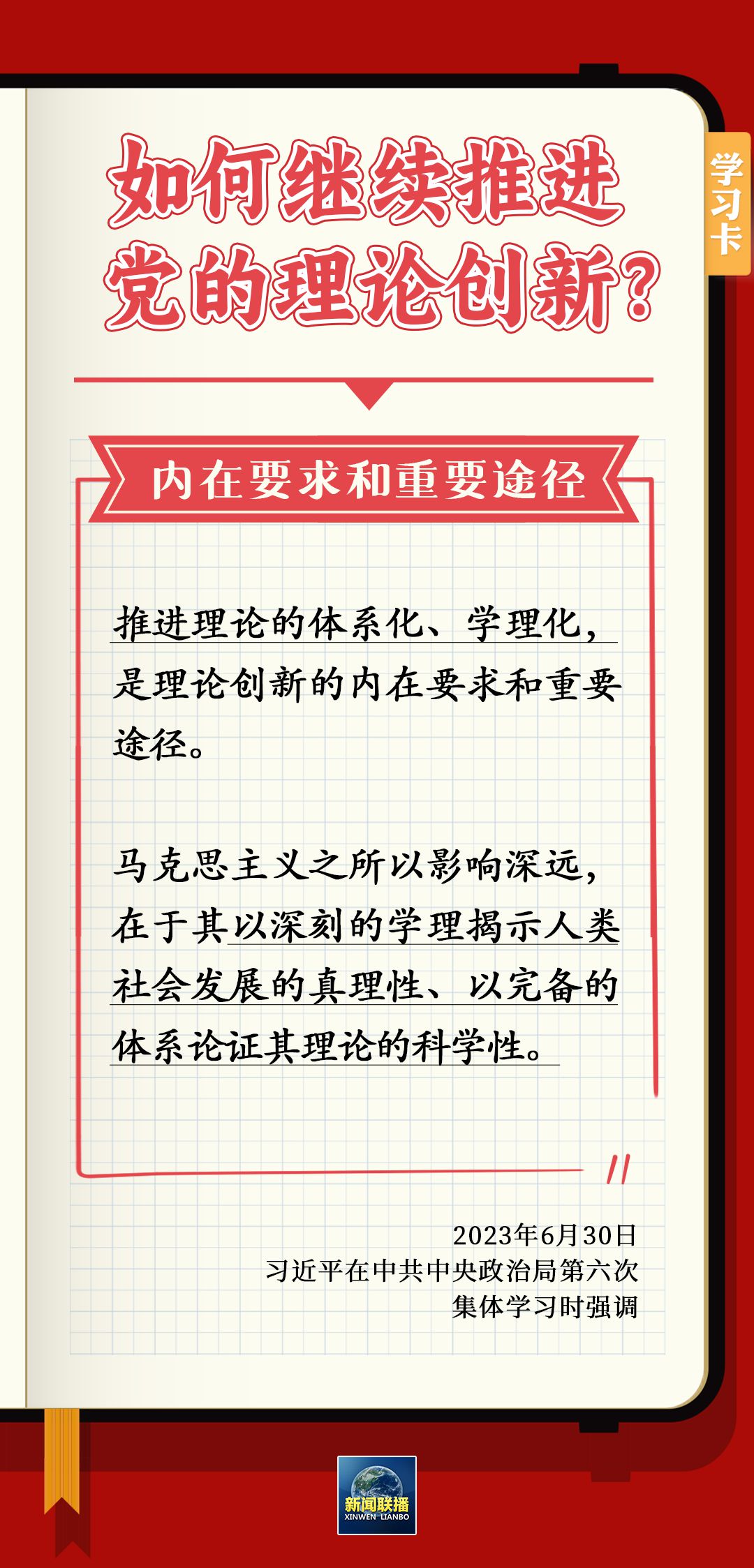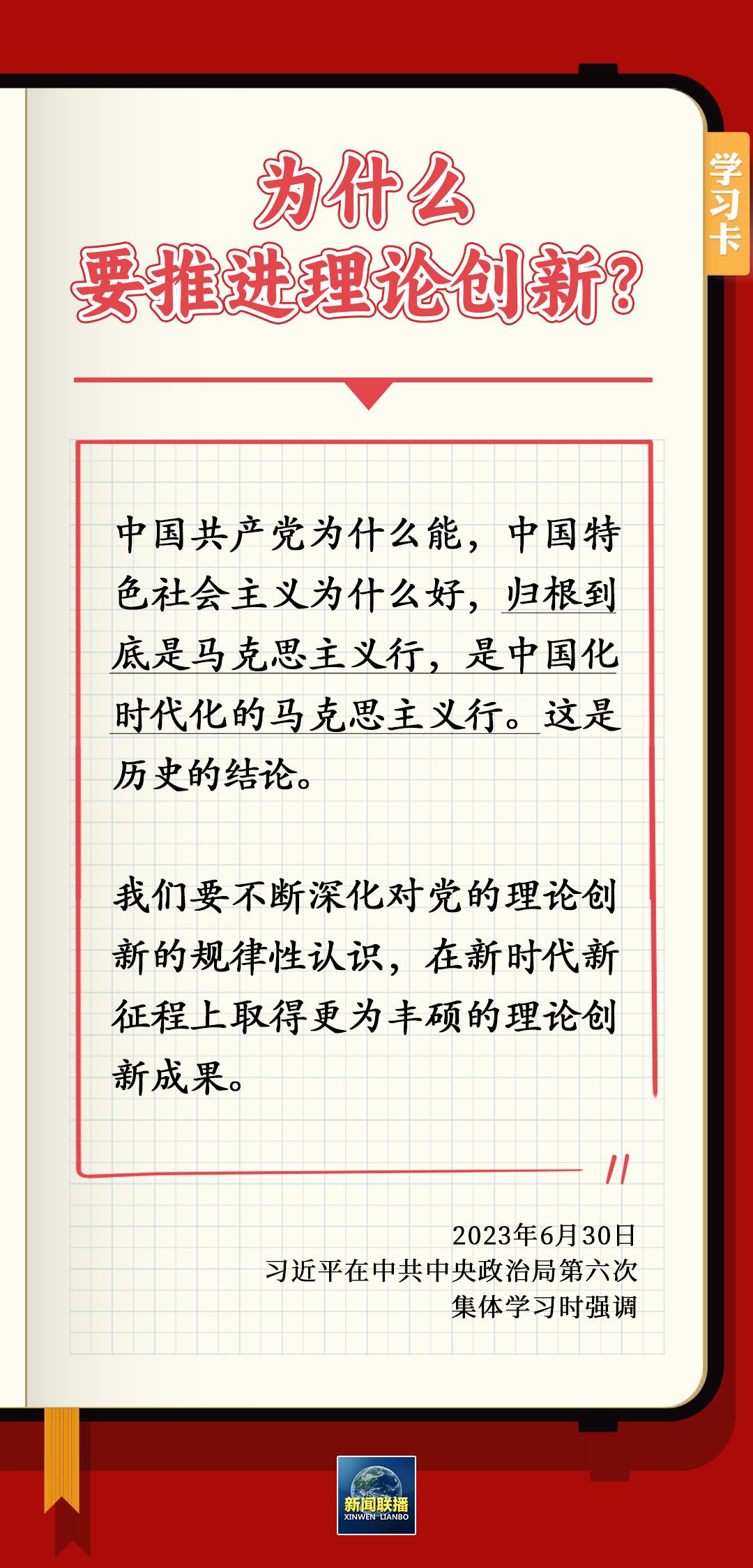 6月30日,習(xi) 近平在主持中共中央政治局第六次集體(ti) 學習(xi) 時強調,要不斷深化對黨(dang) 的理論創新的規律性認識。為(wei) 什麽(me) 要推進理論創新?如何繼續推進黨(dang) 的理論創新?一起學習(xi) ↓