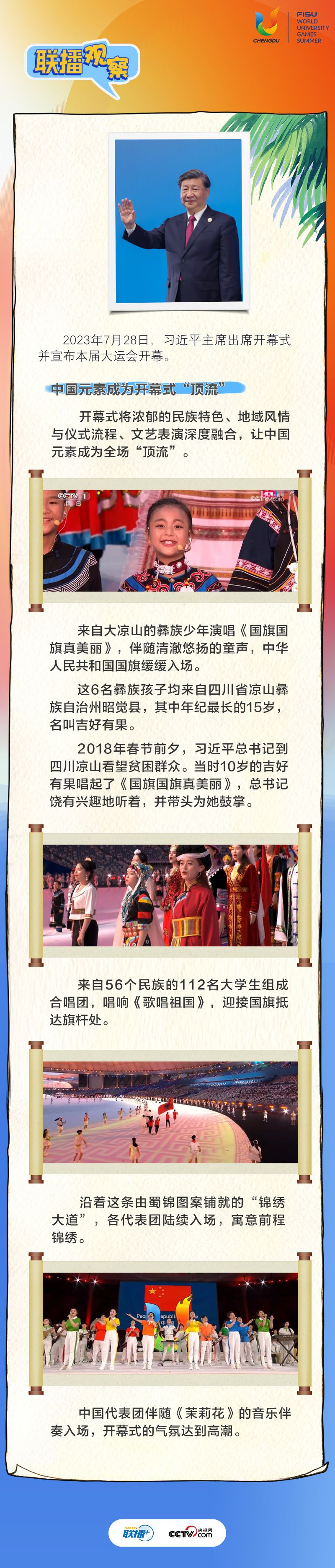 7月28日晚,第31屆世界大學生夏季運動會(hui) 開幕式在四川省成都市舉(ju) 行。習(xi) 近平主席出席開幕式並宣布本屆大運會(hui) 開幕。