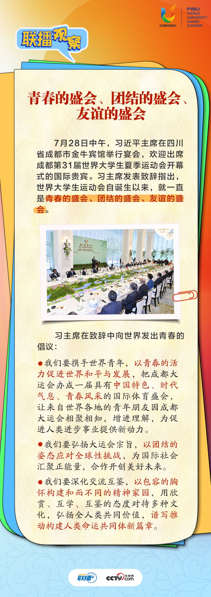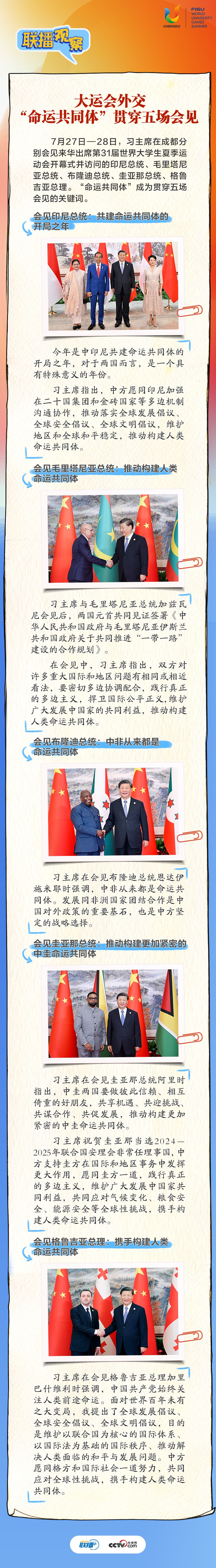 大運會(hui) 時間,我國重要的主場外交也同步拉開帷幕,習(xi) 近平主席的日程格外繁忙。央視網《聯播+》帶您沉浸式感受這場青春盛會(hui) 為(wei) 世界送出的別具匠心的“四川禮物”。